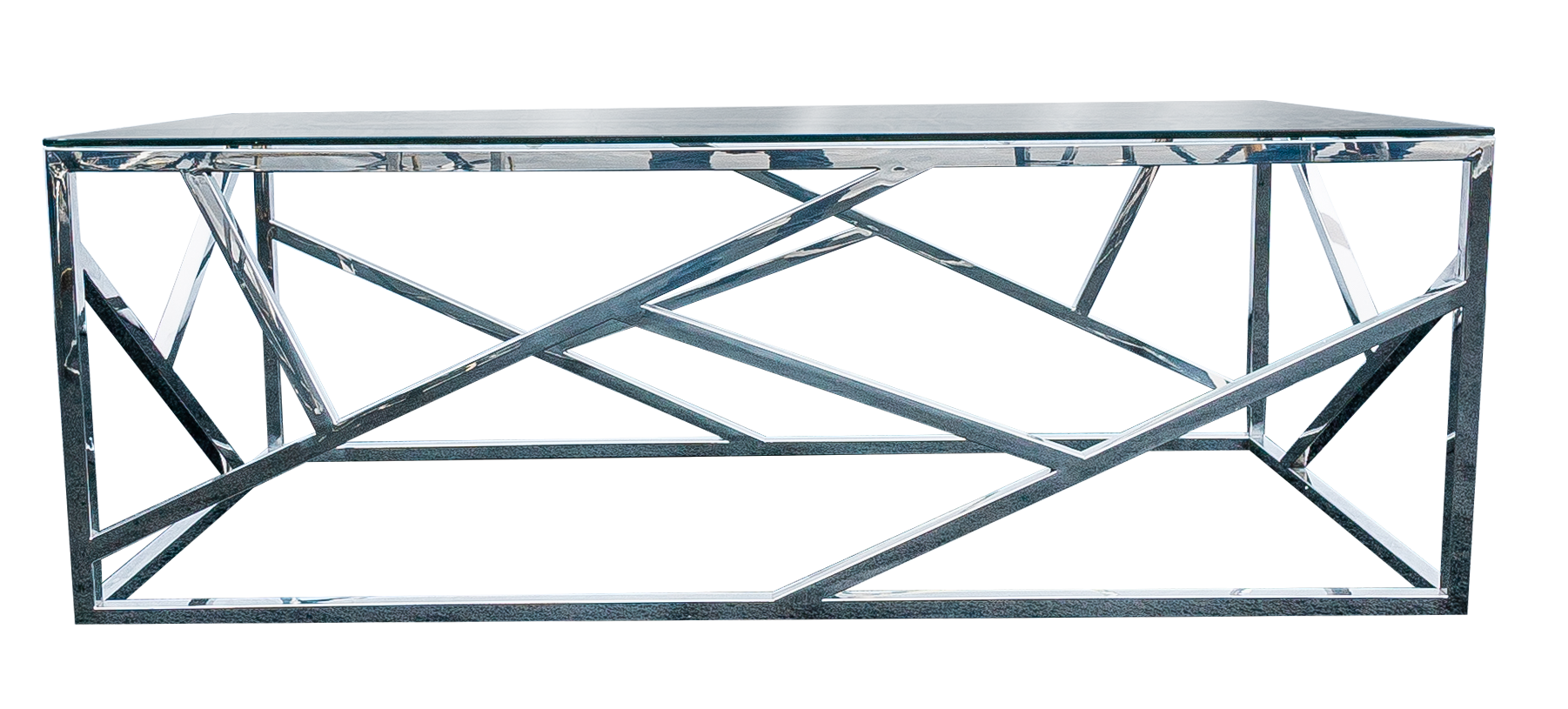 Table, Coffee, Shiny Silver W/Glass Top – Hundred House