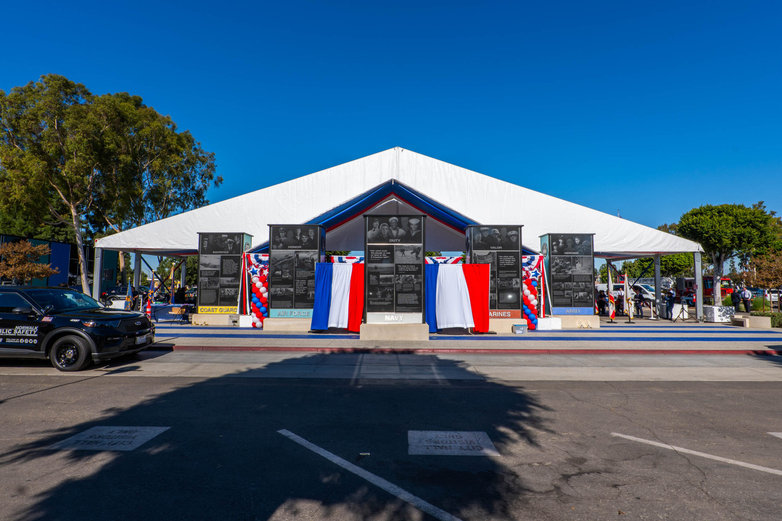 Don’t just take our word for it. The accompanying video demonstrates our team in action, meticulously installing the tent structures for the Veterans Day event. Our photo gallery below captures the transformation of the space, highlighting the scale and beauty of these installations.